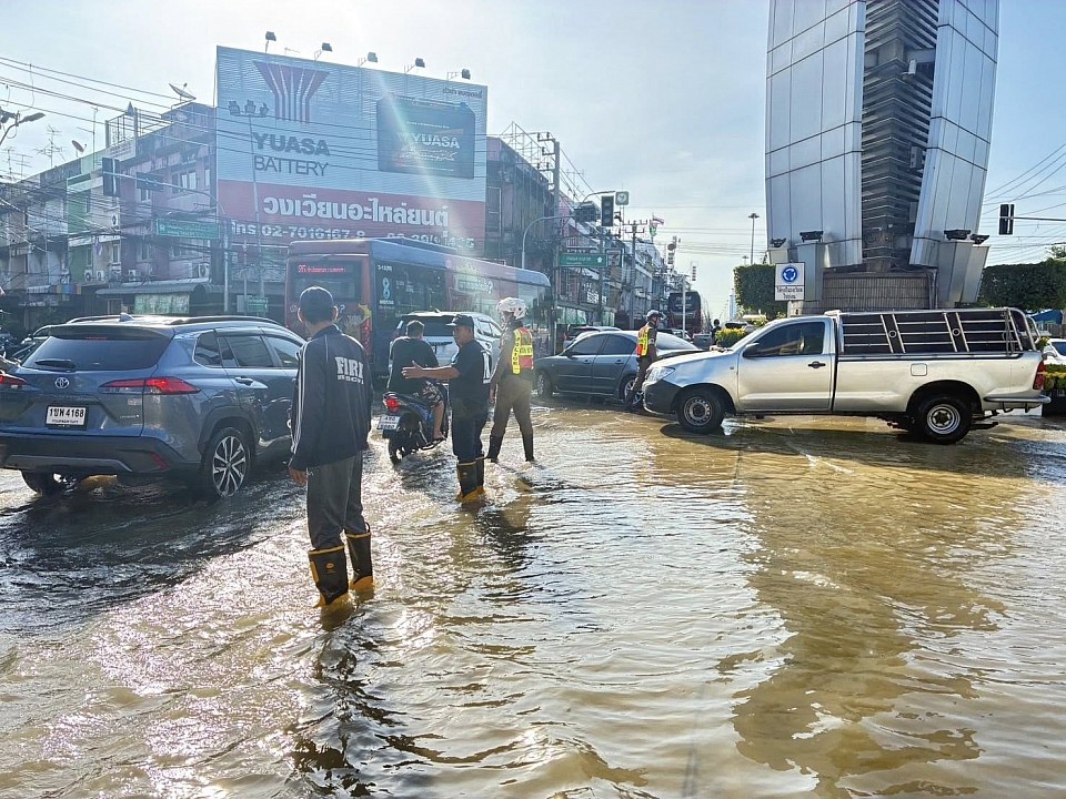 ประชาสัมพันธ์ผู้สัญจร น้ำท่วมขังผิวการจราจรเนื่องจากน้ำทะเลหนุนสูง